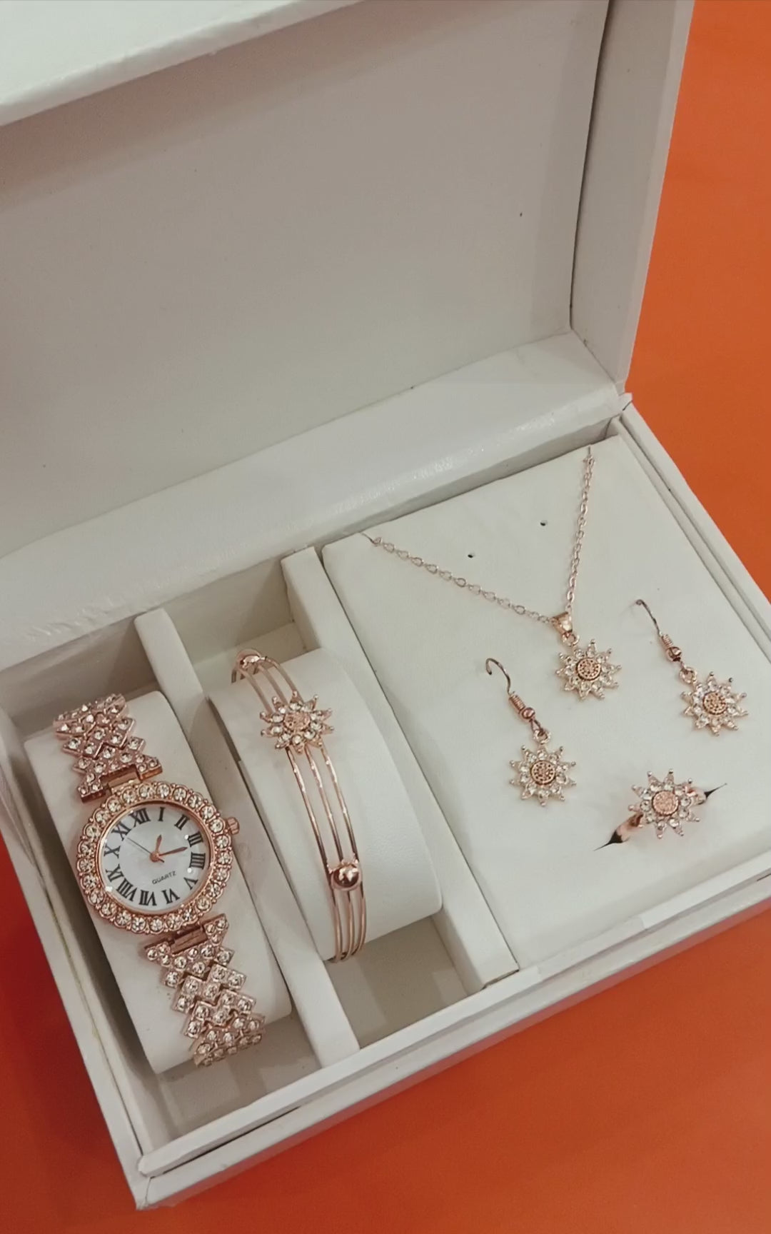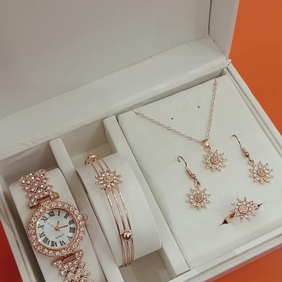Al-Syed Roman Rose Gold Watch with Star Jewelry Set in Same Box